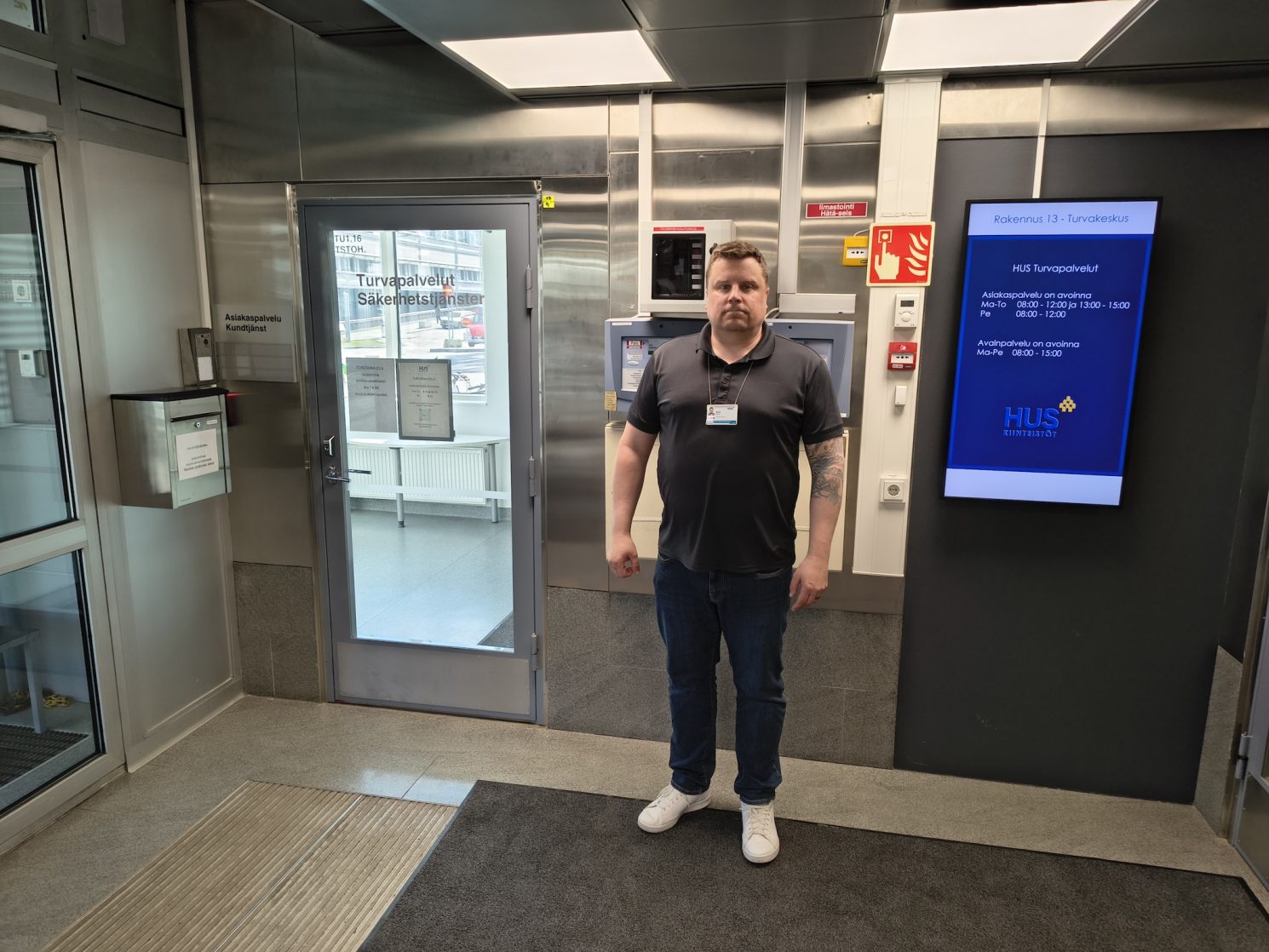 Tässä juttusarjassa kurkistamme HUS Kiinteistöt -yhtiöryhmän työntekijöiden arkeen. Toisena esittelyvuorossa on HUS Turvapalvelut Oy – porukka, jonka näkyvimmin tunnistaa sairaala-alueilla liikkuvista vartijoista. Sairaala-alueiden turvallisuutta valvotaan myös turvavalvomoista käsin.
